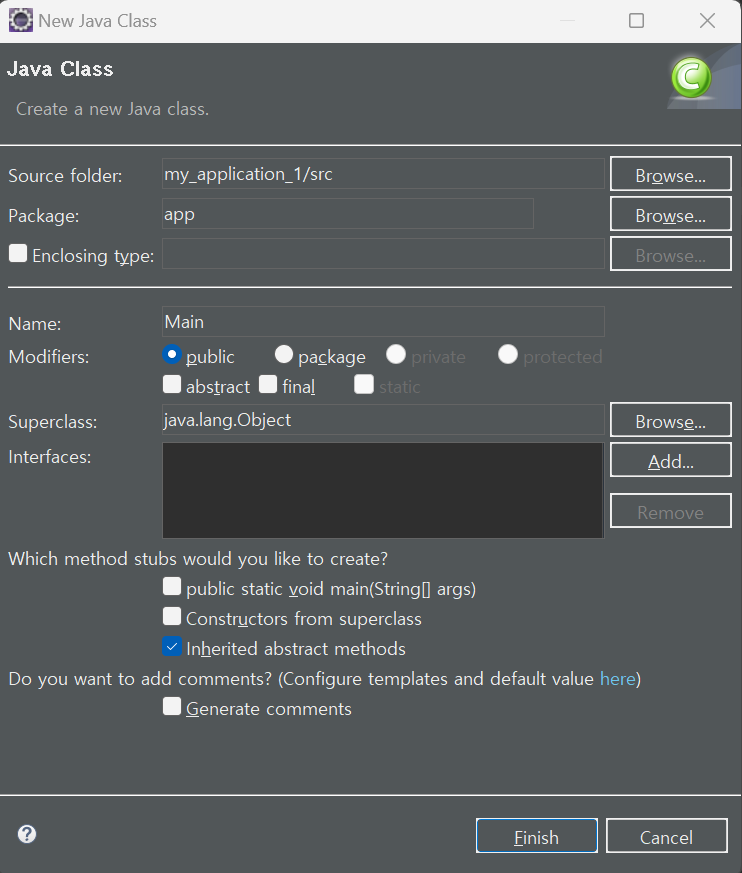 [File] -> [New] -> [Java Project] -> 입력 -> [Finish]